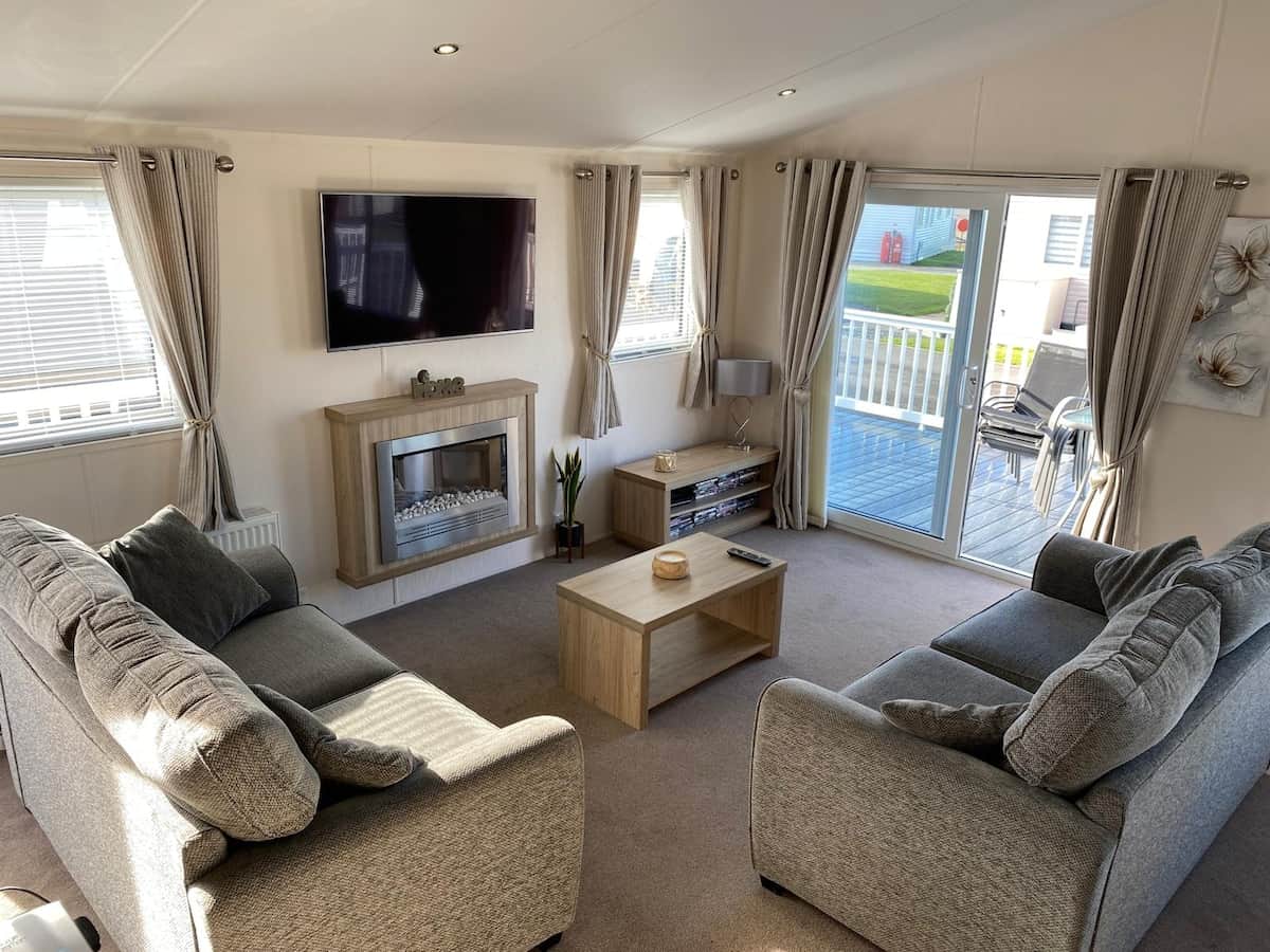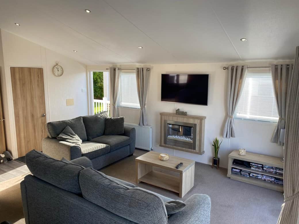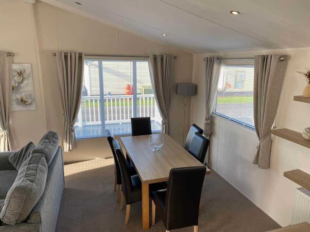 This beautiful Lodge on Ocean Edge Holiday Park has spectacular views of the sea and the best sunsets to be able to sit in the evening on the spacious decking area and watch the sun go down over Morecambe.